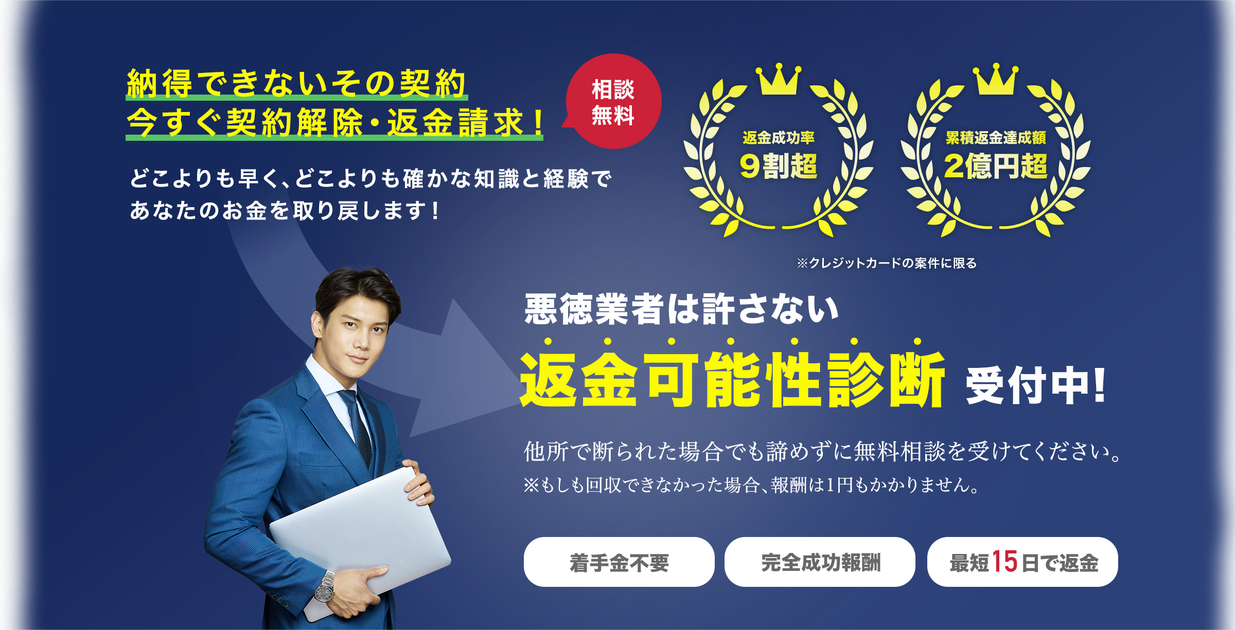 締結後すぐに返金に向けた作業、交渉をスピーディーに行います。